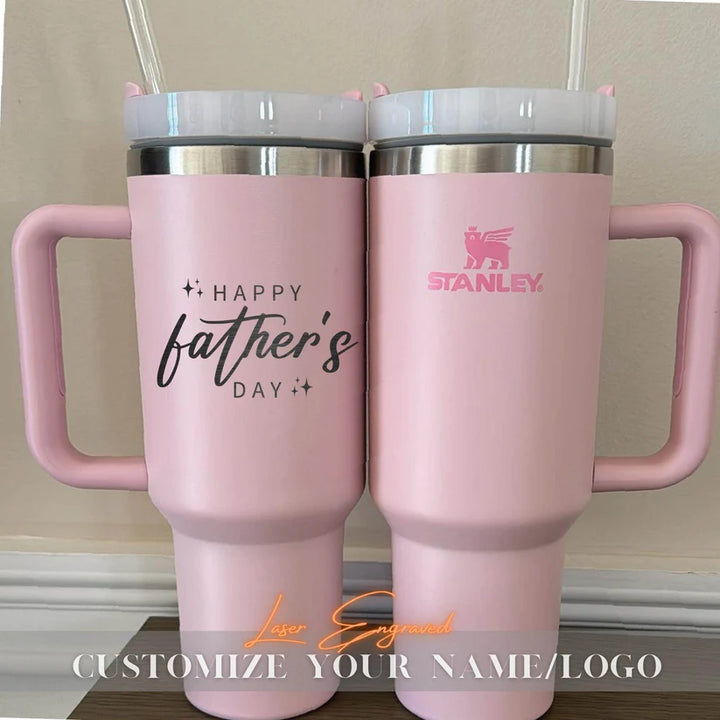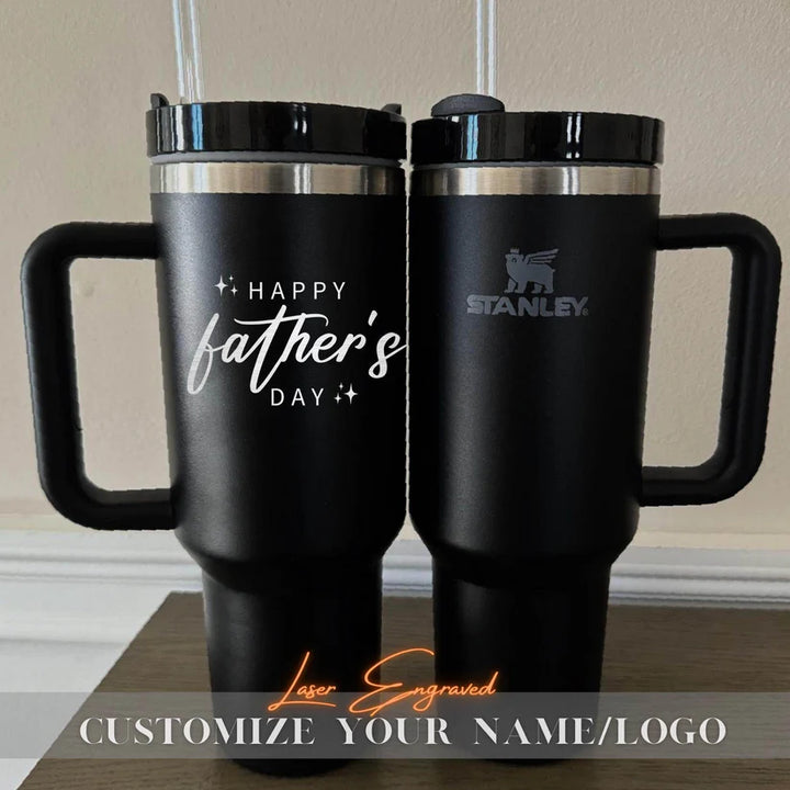 Custom Stanley 40oz Tumbler Cup for Dad | Happy Father’s Day Engraved Gift | Personalized Stanley Cup with Name, Dad & Mom Gift Idea