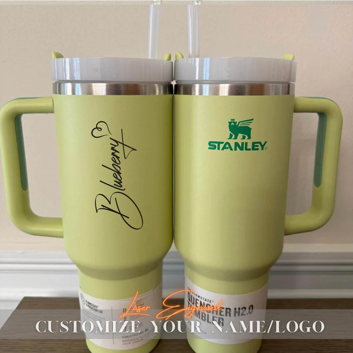 Custom Stanley 40oz Tumbler With Laser Engraved Name, Logo Engraved 40oz Tumbler, birth month flower, Gifts for Her, bridesmaid gifts Your Unique Gift is Just a Step Away – Start Personalizing Now! Elevate your hydration game with the Stanley Quencher H2.0 Flow State Tumbler – a premium, laser-engraved stainless steel vacuum-insulated tumbler designed to keep you refreshed all day long. Whether you're hiking, commuting, or running errands, this tumbler is your perfect hydration companion, combining style, durability, and functionality. Why Choose the Stanley Quencher H2.0 Tumbler? • All-Day Temperature Control: Keeps drinks hot for 7 hours, cold for 11 hours, and iced for up to 2 days. • Eco-Friendly & Sustainable: Made with 90% recycled 18/8 stainless steel and BPA-free materials, featuring a recycled stainless steel icon inside to highlight its eco-conscious design. • Personalized Perfection: Add a custom touch with high-quality laser engraving that won’t fade, peel, or wear off. Perfect for names, monograms, logos, or meaningful quotes. • Travel-Ready Design: a reusable straw, a comfort-grip handle, and a base that fits most car cup holders (3.1” diameter). • Built to Last: Durable, double-wall vacuum insulation ensures your drinks stay at the perfect temperature, no matter where life takes you. Product Details: • Dimensions: 3.86" L x 5.82" W x 12.3" H • Material: 90% recycled 18/8 stainless steel, BPA-free • Features: Double-wall vacuum insulation, reusable straw, comfort-grip handle, car cup holder compatible Perfect for Every Occasion: • Personalized Gifts: Ideal for weddings, anniversaries, Valentine’s Day, Mother Day, Father Day, Nurse Day, Thanksgiving Day, Halloween Day, Christmas Day, birthdays, or holidays. • Thoughtful Tokens: Great for teachers, brides, grooms, sports enthusiasts, or coffee lovers. • Corporate & Branded Merchandise: Add your logo for a unique promotional item. • Everyday Essentials: A must-have for outdoor adventures, work, or travel. How It Works: 1. Choose Your Tumbler: Select the Stanley Quencher H2.0 Tumbler. 2. Personalize It: Add your custom text, name, monogram, or logo during checkout. 3. Enjoy or Gift: Receive a one-of-a-kind tumbler that’s perfect for you or a loved one. Shipping & Returns: • Processing Time: Orders are processed within 1-6 business days. You’ll receive a tracking number once your order ships. • Return Policy: As each tumbler is made to order, we do not accept returns or exchanges. However, if you have any issues, please reach out—we’re here to help! Thank You for Supporting Our Small Business! — Us Engravo Make It Yours Today – Personalize Now!
