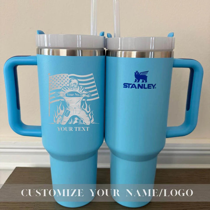 Your Unique gift is just a step away-Start Personalizing Now! Customized Football Player Name on Stanley 40oz Cup - Football Player Mug - Custom 40oz Tumblers -Engraved 40oz Sports Cups - Gifts For Her Stanley Quencher H2.0 with Straw Tumbler with Leak proof Lid 40 oz - Built-In Straw & Handle - Cup holder Compatible for Travel - Insulated Stainless Steel Cup - BPA-Free - All Colors are available Whether you're on a hike, commuting, or running errands, ensures you stay hydrated wherever life takes you. Product Details: Hot: 7 hours Cold: 11 hours Iced: 2 days Weight: 1.4 lbs Dimensions: 3.86" L x 5.82" W x 12.3" H Made with 90% recycled 18/8 stainless steel and BPA-free materials. The tumbler includes a recycled stainless steel icon inside, signifying its sustainable construction. Other features: Double-wall vacuum insulation Screw-on 3-position lid Reusable straw Comfort-grip handle Car cup holder compatible (base diameter: 3.1 inches) Add this durable, eco-friendly tumbler to your collection today and take your hydration game to the next level! Shipping: Orders are processed within 1-6 business days. You’ll receive a tracking number once your order has shipped. Return Policy: As each item is made to order, we do not accept returns or exchanges. If you experience any issues with your order, please don’t hesitate to reach out. If you have any questions about the product or ordering process, feel free to contact us! Thank you for supporting our small business! Us Engravo ,Personalized Tumbler with Lid,Custom Laser Engraved Travel Cup,Engraved Wedding Tumbler,Custom Tumbler for Teacher,Engraved Tumblers for Women,Custom Tumbler with Name,Engraved Insulated Drinkware,Unique Personalized Tumbler,Custom Tumber for summer,Stanley Cup,Stanley,Stanley Tumbler,Personalized Stanley Cup,Personalized Stanley,Customized Stanley,Custom Stanley,Custom Stanley,Custom