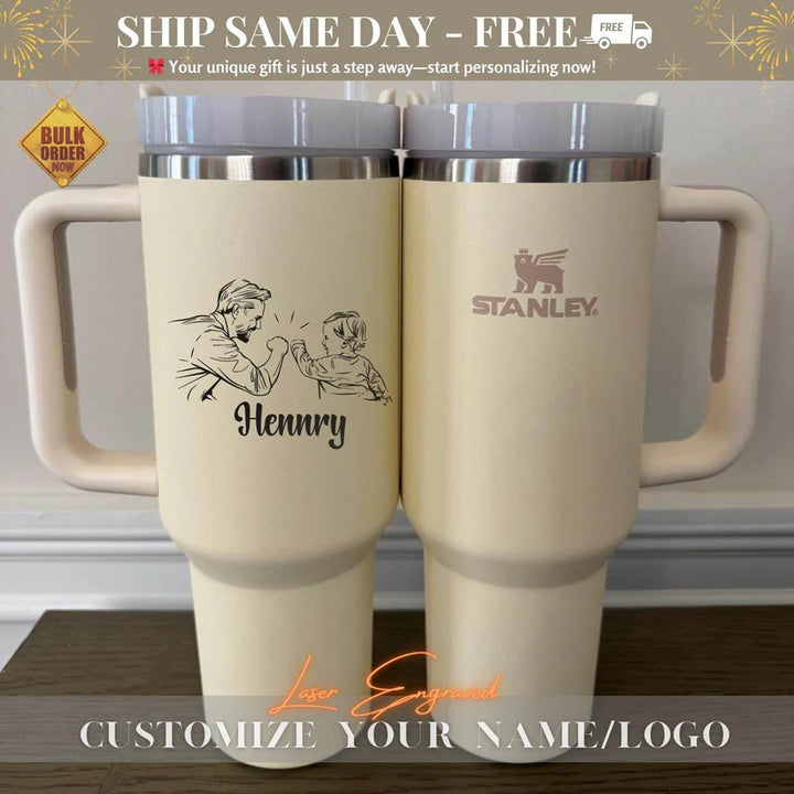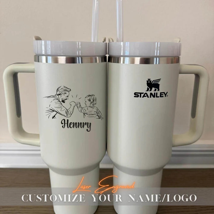 Dad Fist Bump Kids Names Tumbler, Father's Day Gift for Daddy, Tumbler Laser Engraved 40oz Stainless Steel Cup, Personalised Tumbler for Dad Your Unique Gift is Just a Step Away – Start Personalizing Now! Elevate your hydration game with the Stanley Quencher H2.0 Flow State Tumbler – a premium, laser-engraved stainless steel vacuum-insulated tumbler designed to keep you refreshed all day long. Whether you're hiking, commuting, or running errands, this tumbler is your perfect hydration companion, combining style, durability, and functionality. Why Choose the Stanley Quencher H2.0 Tumbler? • All-Day Temperature Control: Keeps drinks hot for 7 hours, cold for 11 hours, and iced for up to 2 days. • Eco-Friendly & Sustainable: Made with 90% recycled 18/8 stainless steel and BPA-free materials, featuring a recycled stainless steel icon inside to highlight its eco-conscious design. • Personalized Perfection: Add a custom touch with high-quality laser engraving that won’t fade, peel, or wear off. Perfect for names, monograms, logos, or meaningful quotes. • Travel-Ready Design: a reusable straw, a comfort-grip handle, and a base that fits most car cup holders (3.1” diameter). • Built to Last: Durable, double-wall vacuum insulation ensures your drinks stay at the perfect temperature, no matter where life takes you. Product Details: • Dimensions: 3.86" L x 5.82" W x 12.3" H • Material: 90% recycled 18/8 stainless steel, BPA-free • Features: Double-wall vacuum insulation, reusable straw, comfort-grip handle, car cup holder compatible Perfect for Every Occasion: • Personalized Gifts: Ideal for weddings, anniversaries, Valentine’s Day, Mother Day, Father Day, Nurse Day, Thanksgiving Day, Halloween Day, Christmas Day, birthdays, or holidays. • Thoughtful Tokens: Great for teachers, brides, grooms, sports enthusiasts, or coffee lovers. • Corporate & Branded Merchandise: Add your logo for a unique promotional item. • Everyday Essentials: A must-have for outdoor adventures, work, or travel. How It Works: 1. Choose Your Tumbler: Select the Stanley Quencher H2.0 Tumbler. 2. Personalize It: Add your custom text, name, monogram, or logo during checkout. 3. Enjoy or Gift: Receive a one-of-a-kind tumbler that’s perfect for you or a loved one. Shipping & Returns: • Processing Time: Orders are processed within 1-6 business days. You’ll receive a tracking number once your order ships. • Return Policy: As each tumbler is made to order, we do not accept returns or exchanges. However, if you have any issues, please reach out—we’re here to help! Thank You for Supporting Our Small Business! — Us Engravo Make It Yours Today – Personalize Now! Personalized Tumbler, Custom Tumbler, Laser Engraved Tumbler, Engraved Travel Mug, Personalized Coffee Tumbler, Custom Insulated Tumbler, Engraved Stainless Steel Tumbler, Personalized Travel Tumbler, Custom Monogrammed Tumbler, Engraved Water Bottle, Custom Name Tumbler, Personalized Gifts, Custom Gifts, Engraved Gifts, Wedding Gifts, Anniversary Gifts, Valentine’s Day Gifts, Unique Gifts for Her, Gifts for Him, Custom Drinkware, Personalized Cup, Gifts for Couples, Custom Stanley, Monogrammed Gifts, Personalized Water Bottle, Gift for Bride, Personalized Travel Mug, Custom Insulated Cup, Stanley Cup, Stanley Tumbler, Personalized Stanley, Custom Stanley Cup, Stanley 40oz, Stanley Travel Mug, Stanley Mug, Stanley Insulated Cup, Stanley Drinkware, Engraved Stanley Cup, Stanley Cup Custom, Stanley Cup Personalized, Stanley 40oz Tumbler, Stanley Cup Gift, Custom Stanley Tumbler, Stanley Water Bottle, Stanley Mug Custom, Stanley Anniversary Gift, Stanley Gift for Him, Stanley Gift for Her, Custom Stanley 40oz Mug for Summer