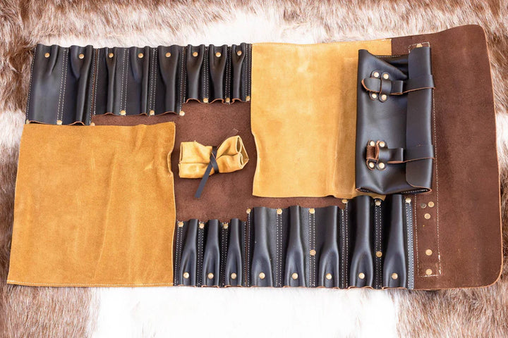 The chef knife travel roll helps to keep upto 16 items including knives scissors and sharpener etc. its made with carefully selected cow hide leather. Measurements : Length : 30 inch Width : 16 inch Please note: • You will get exact same set as shown in the pictures. • Our company is able to customize your order. Please contact us. Or please let us know through etsy messages. GRCHFR-7926 Disclaimer: • We don’t sell to under the age of 18. • Check your country law as some countries don’t allow purchases of some products. • If your purchase is held by customs in your country, we will not be responsible and no refund will be issued. • Handle your package very carefully as it contains sharp object. • We are not responsible for injury, death or criminal acts due to the misuse of our product.