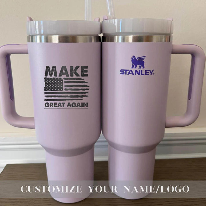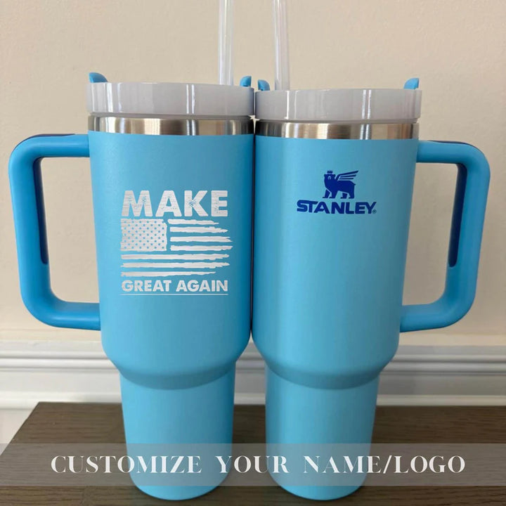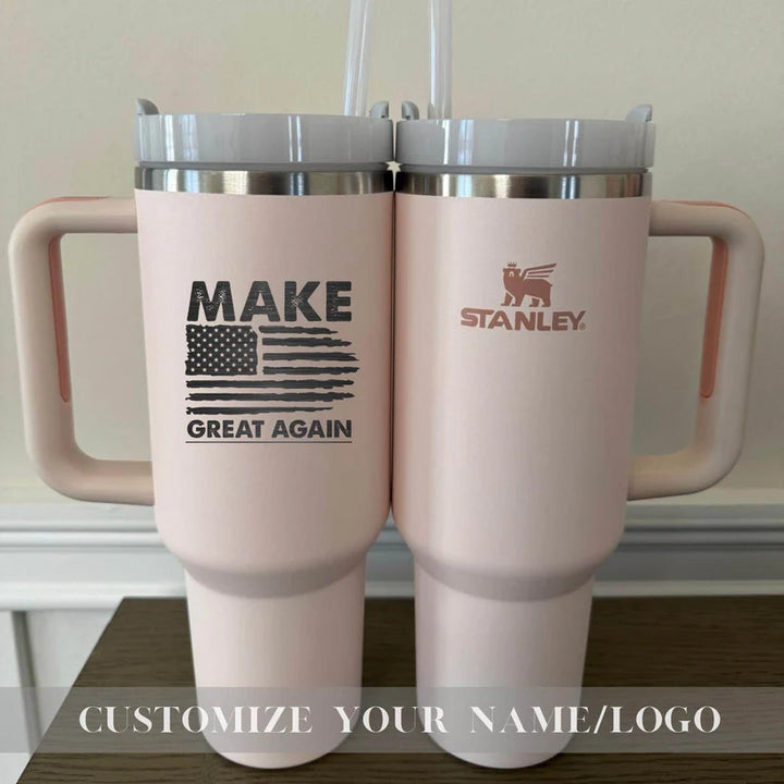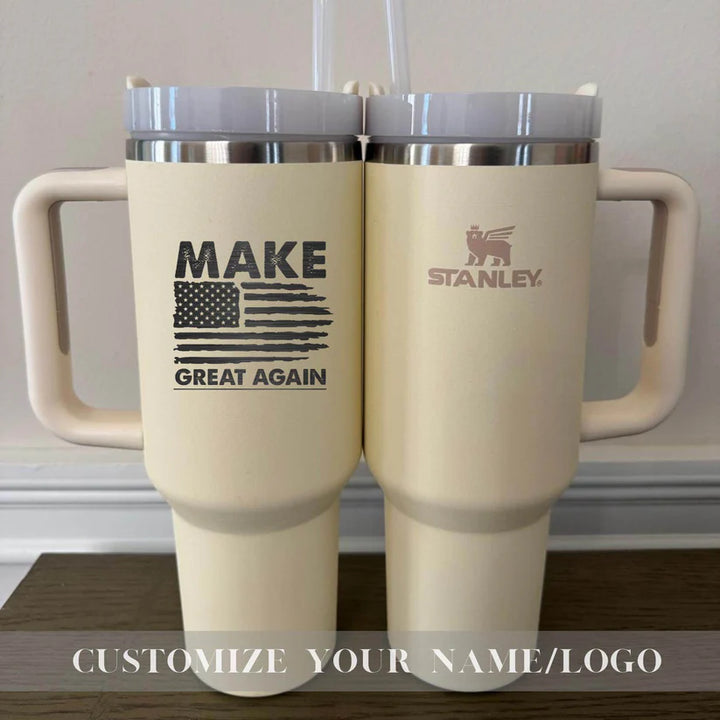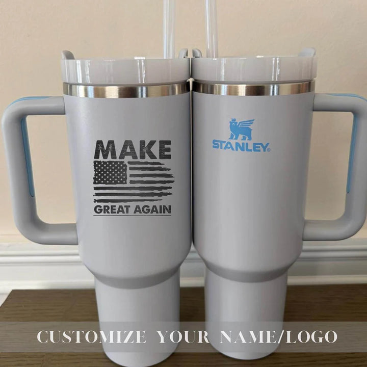 Your Unique gift is just a step away-Start Personalizing Now! Make America Great Again Stanley 40oz Tumbler - Insulated Trump Mug - Customize Trump Stanley 40oz Cup - Trump take America back Tumbler Stanley Quencher H2.0 with Straw Tumbler with Leak proof Lid 40 oz - Built-In Straw & Handle - Cup holder Compatible for Travel - Insulated Stainless Steel Cup - BPA-Free - All Colors are available Whether you're on a hike, commuting, or running errands, ensures you stay hydrated wherever life takes you. Product Details: Hot: 7 hours Cold: 11 hours Iced: 2 days Weight: 1.4 lbs Dimensions: 3.86" L x 5.82" W x 12.3" H Made with 90% recycled 18/8 stainless steel and BPA-free materials. The tumbler includes a recycled stainless steel icon inside, signifying its sustainable construction. Other features: Double-wall vacuum insulation Screw-on 3-position lid Reusable straw Comfort-grip handle Car cup holder compatible (base diameter: 3.1 inches) Add this durable, eco-friendly tumbler to your collection today and take your hydration game to the next level! Shipping: Orders are processed within 1-6 business days. You’ll receive a tracking number once your order has shipped. Return Policy: As each item is made to order, we do not accept returns or exchanges. If you experience any issues with your order, please don’t hesitate to reach out. If you have any questions about the product or ordering process, feel free to contact us! Thank you for supporting our small business! Us Engravo ,Personalized Tumbler with Lid,Custom Laser Engraved Travel Cup,Engraved Wedding Tumbler,Custom Tumbler for Teacher,Engraved Tumblers for Women,Custom Tumbler with Name,Engraved Insulated Drinkware,Unique Personalized Tumbler,Custom Tumber for summer