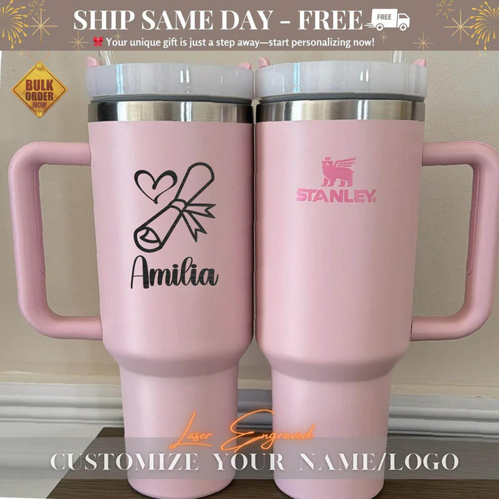 Personalised Graduation Gift, Graduation Tumbler, Graduation Gift for Her, Graduation Gift for Daughter, Graduation Gift for Granddaughter Your Unique Gift is Just a Step Away – Start Personalizing Now! Elevate your hydration game with the Stanley Quencher H2.0 FlowState Tumbler – a premium, laser-engraved stainless steel vacuum-insulated tumbler designed to keep you refreshed all day long. Whether you're hiking, commuting, or running errands, this tumbler is your perfect hydration companion, combining style, durability, and functionality. Why Choose the Stanley Quencher H2.0 Tumbler? • All-Day Temperature Control: Keeps drinks hot for 7 hours, cold for 11 hours, and iced for up to 2 days. • Eco-Friendly & Sustainable: Made with 90% recycled 18/8 stainless steel and BPA-free materials, featuring a recycled stainless steel icon inside to highlight its eco-conscious design. • Personalized Perfection: Add a custom touch with high-quality laser engraving that won’t fade, peel, or wear off. Perfect for names, monograms, logos, or meaningful quotes. • Travel-Ready Design: a reusable straw, a comfort-grip handle, and a base that fits most car cup holders (3.1” diameter). • Built to Last: Durable, double-wall vacuum insulation ensures your drinks stay at the perfect temperature, no matter where life takes you. Product Details: • Dimensions: 3.86" L x 5.82" W x 12.3" H • Material: 90% recycled 18/8 stainless steel, BPA-free • Features: Double-wall vacuum insulation, reusable straw, comfort-grip handle, car cup holder compatible Perfect for Every Occasion: • Personalized Gifts: Ideal for weddings, anniversaries, Valentine’s Day, Mother Day, Father Day, Nurse Day, Thanksgiving Day, Halloween Day, Christmas Day, birthdays, or holidays. • Thoughtful Tokens: Great for teachers, brides, grooms, sports enthusiasts, or coffee lovers. • Corporate & Branded Merchandise: Add your logo for a unique promotional item. • Everyday Essentials: A must-have for outdoor adventures, work, or travel. How It Works: 1. Choose Your Tumbler: Select the Stanley Quencher H2.0 Tumbler. 2. Personalize It: Add your custom text, name, monogram, or logo during checkout. 3. Enjoy or Gift: Receive a one-of-a-kind tumbler that’s perfect for you or a loved one. Shipping & Returns: • Processing Time: Orders are processed within 1-6 business days. You’ll receive a tracking number once your order ships. • Return Policy: As each tumbler is made to order, we do not accept returns or exchanges. However, if you have any issues, please reach out—we’re here to help! Thank You for Supporting Our Small Business! — Us Engravo Make It Yours Today – Personalize Now! Personalized Tumbler, Custom Tumbler, Laser Engraved Tumbler, Engraved Travel Mug, Personalized Coffee Tumbler, Custom Insulated Tumbler, Engraved Stainless Steel Tumbler, Personalized Travel Tumbler, Custom Monogrammed Tumbler, Engraved Water Bottle, Custom Name Tumbler, Personalized Gifts, Custom Gifts, Engraved Gifts, Wedding Gifts, Anniversary Gifts, Valentine’s Day Gifts, Unique Gifts for Her, Gifts for Him, Custom Drinkware, Personalized Cup, Gifts for Couples, Custom Stanley, Monogrammed Gifts, Personalized Water Bottle, Gift for Bride, Personalized Travel Mug, Custom Insulated Cup, Stanley Cup, Stanley Tumbler, Personalized Stanley, Custom Stanley Cup, Stanley 40oz, Stanley Travel Mug, Stanley Mug, Stanley Insulated Cup, Stanley Drinkware, Engraved Stanley Cup, Stanley Cup Custom, Stanley Cup Personalized, Stanley 40oz Tumbler, Stanley Cup Gift, Custom Stanley Tumbler, Stanley Water Bottle, Stanley Mug Custom, Stanley Anniversary Gift, Stanley Gift for Him, Stanley Gift for Her, Custom Stanley 40oz Mug for Summer