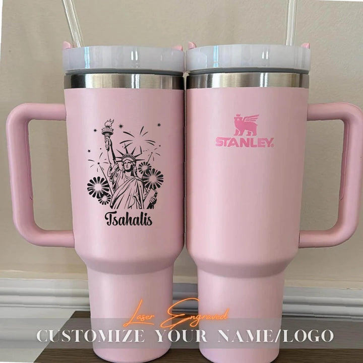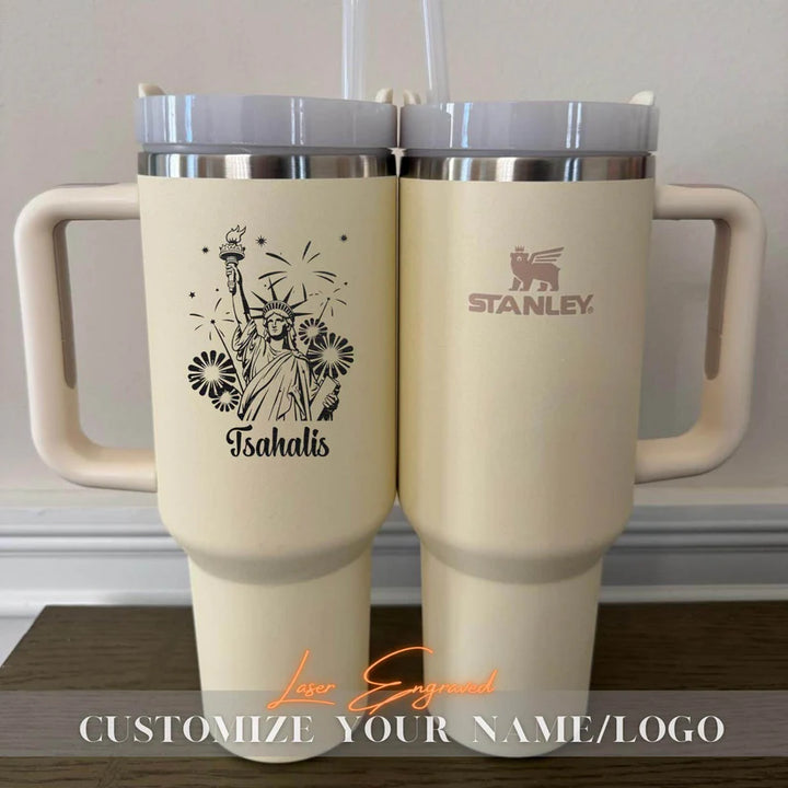 Personalized 40oz Engraved Statue of Liberty Tumbler – Patriotic Stanley Travel Cup – 4th of July Gift – USA Independence Day Your Unique Gift is Just a Step Away – Start Personalizing Now! Elevate your hydration game with the Stanley Quencher H2.0 FlowState Tumbler – a premium, laser-engraved stainless steel vacuum-insulated tumbler designed to keep you refreshed all day long. Whether you're hiking, commuting, or running errands, this tumbler is your perfect hydration companion, combining style, durability, and functionality. Why Choose the Stanley Quencher H2.0 Tumbler? • All-Day Temperature Control: Keeps drinks hot for 7 hours, cold for 11 hours, and iced for up to 2 days. • Eco-Friendly & Sustainable: Made with 90% recycled 18/8 stainless steel and BPA-free materials, featuring a recycled stainless steel icon inside to highlight its eco-conscious design. • Personalized Perfection: Add a custom touch with high-quality laser engraving that won’t fade, peel, or wear off. Perfect for names, monograms, logos, or meaningful quotes. • Travel-Ready Design: a reusable straw, a comfort-grip handle, and a base that fits most car cup holders (3.1” diameter). • Built to Last: Durable, double-wall vacuum insulation ensures your drinks stay at the perfect temperature, no matter where life takes you. Product Details: • Dimensions: 3.86" L x 5.82" W x 12.3" H • Material: 90% recycled 18/8 stainless steel, BPA-free • Features: Double-wall vacuum insulation, reusable straw, comfort-grip handle, car cup holder compatible Perfect for Every Occasion: • Personalized Gifts: Ideal for weddings, anniversaries, Valentine’s Day, Mother Day, Father Day, Nurse Day, Thanksgiving Day, Halloween Day, Christmas Day, birthdays, or holidays. • Thoughtful Tokens: Great for teachers, brides, grooms, sports enthusiasts, or coffee lovers. • Corporate & Branded Merchandise: Add your logo for a unique promotional item. • Everyday Essentials: A must-have for outdoor adventures, work, or travel. How It Works: 1. Choose Your Tumbler: Select the Stanley Quencher H2.0 Tumbler. 2. Personalize It: Add your custom text, name, monogram, or logo during checkout. 3. Enjoy or Gift: Receive a one-of-a-kind tumbler that’s perfect for you or a loved one. Shipping & Returns: • Processing Time: Orders are processed within 1-6 business days. You’ll receive a tracking number once your order ships. • Return Policy: As each tumbler is made to order, we do not accept returns or exchanges. However, if you have any issues, please reach out—we’re here to help! Thank You for Supporting Our Small Business! — Us Engravo Make It Yours Today – Personalize Now!