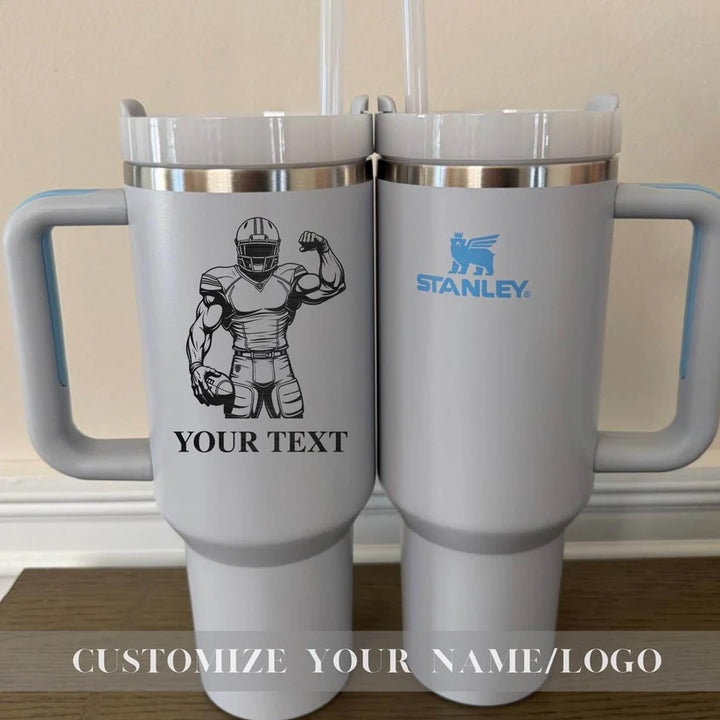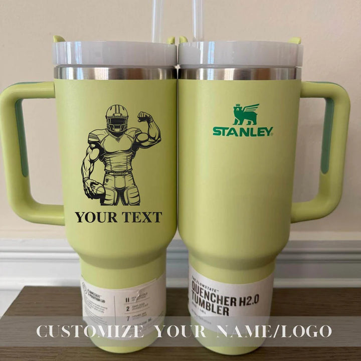 Your Unique gift is just a step away-Start Personalizing Now! Personalized Football Stanley 40oz cup - Custom Sports Stanley cup with Name - Football Mascot Player & Team Name - Engraved Football Cups Stanley Quencher H2.0 with Straw Tumbler with Leak proof Lid 40 oz - Built-In Straw & Handle - Cup holder Compatible for Travel - Insulated Stainless Steel Cup - BPA-Free - All Colors are available Whether you're on a hike, commuting, or running errands, ensures you stay hydrated wherever life takes you. Product Details: Hot: 7 hours Cold: 11 hours Iced: 2 days Weight: 1.4 lbs Dimensions: 3.86" L x 5.82" W x 12.3" H Made with 90% recycled 18/8 stainless steel and BPA-free materials. The tumbler includes a recycled stainless steel icon inside, signifying its sustainable construction. Other features: Double-wall vacuum insulation Screw-on 3-position lid Reusable straw Comfort-grip handle Car cup holder compatible (base diameter: 3.1 inches) Add this durable, eco-friendly tumbler to your collection today and take your hydration game to the next level! Shipping: Orders are processed within 1-6 business days. You’ll receive a tracking number once your order has shipped. Return Policy: As each item is made to order, we do not accept returns or exchanges. If you experience any issues with your order, please don’t hesitate to reach out. If you have any questions about the product or ordering process, feel free to contact us! Thank you for supporting our small business! Us Engravo ,Personalized Tumbler with Lid,Custom Laser Engraved Travel Cup,Engraved Wedding Tumbler,Custom Tumbler for Teacher,Engraved Tumblers for Women,Custom Tumbler with Name,Engraved Insulated Drinkware,Unique Personalized Tumbler,Custom Tumber for summer,Stanley Cup,Stanley,Stanley Tumbler,Personalized Stanley Cup,Personalized Stanley,Customized Stanley,Custom Stanley,Custom Stanley,Custom