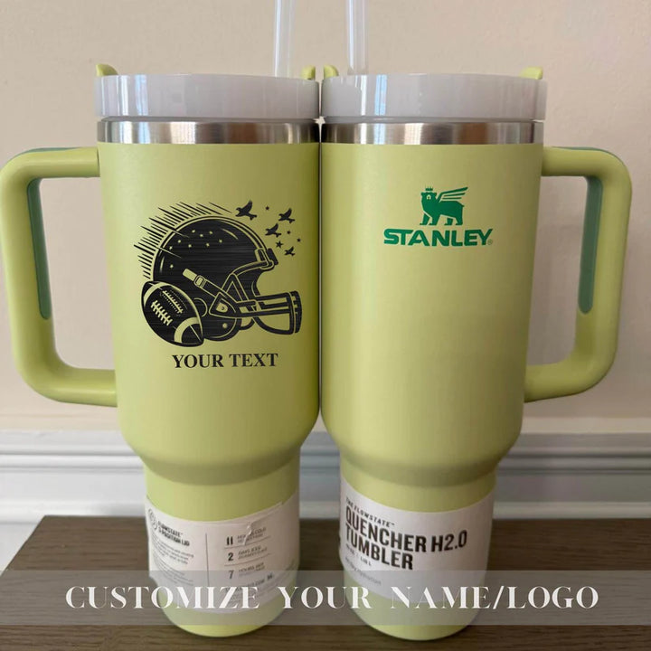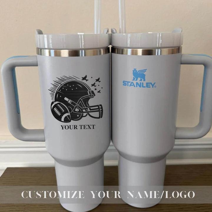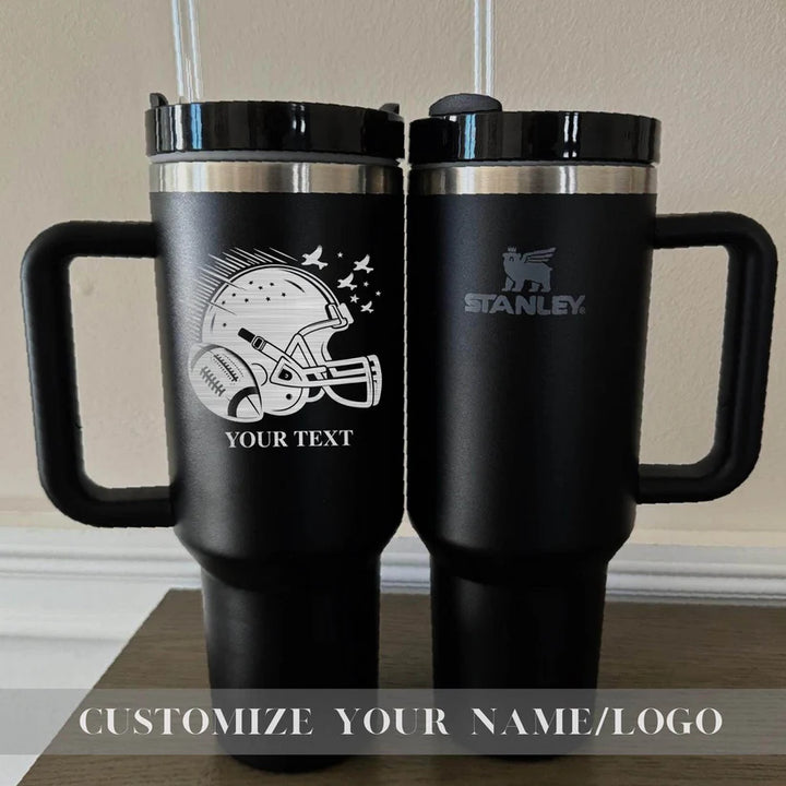 Your Unique gift is just a step away-Start Personalizing Now! Personalized Football Team Name on Stanley 40oz cup - Custom Sports Stanley cup with Name - Football 40oz Stanley tumbler - Football Team Stanley Quencher H2.0 with Straw Tumbler with Leak proof Lid 40 oz - Built-In Straw & Handle - Cup holder Compatible for Travel - Insulated Stainless Steel Cup - BPA-Free - All Colors are available Whether you're on a hike, commuting, or running errands, ensures you stay hydrated wherever life takes you. Product Details: Hot: 7 hours Cold: 11 hours Iced: 2 days Weight: 1.4 lbs Dimensions: 3.86" L x 5.82" W x 12.3" H Made with 90% recycled 18/8 stainless steel and BPA-free materials. The tumbler includes a recycled stainless steel icon inside, signifying its sustainable construction. Other features: Double-wall vacuum insulation Screw-on 3-position lid Reusable straw Comfort-grip handle Car cup holder compatible (base diameter: 3.1 inches) Add this durable, eco-friendly tumbler to your collection today and take your hydration game to the next level! Shipping: Orders are processed within 1-6 business days. You’ll receive a tracking number once your order has shipped. Return Policy: As each item is made to order, we do not accept returns or exchanges. If you experience any issues with your order, please don’t hesitate to reach out. If you have any questions about the product or ordering process, feel free to contact us! Thank you for supporting our small business! Us Engravo ,Personalized Tumbler with Lid,Custom Laser Engraved Travel Cup,Engraved Wedding Tumbler,Custom Tumbler for Teacher,Engraved Tumblers for Women,Custom Tumbler with Name,Engraved Insulated Drinkware,Unique Personalized Tumbler,Custom Tumber for summer,Stanley Cup,Stanley,Stanley Tumbler,Personalized Stanley Cup,Personalized Stanley,Customized Stanley,Custom Stanley,Custom Stanley,Custom