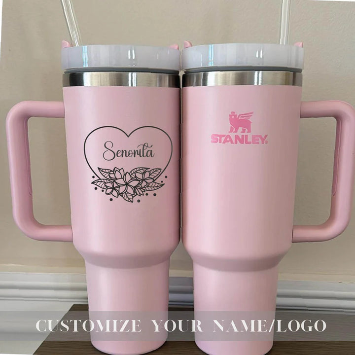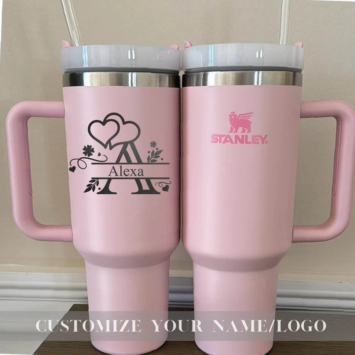Personalized Stanely 40oz Tumbler with Handle & Straw, Custom Engraved Cup, Travel Mug, Wedding Anniversary Gifts for Her Him Women mom dad