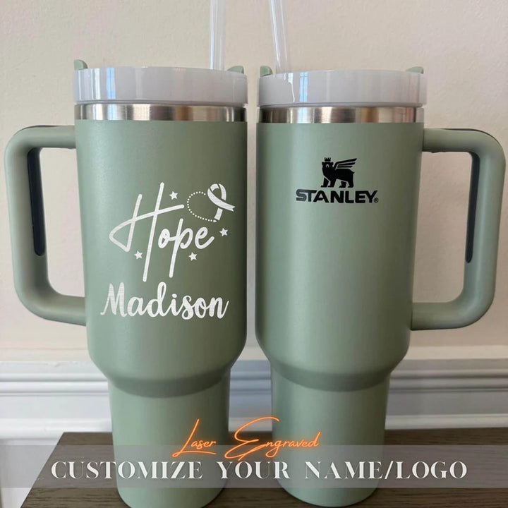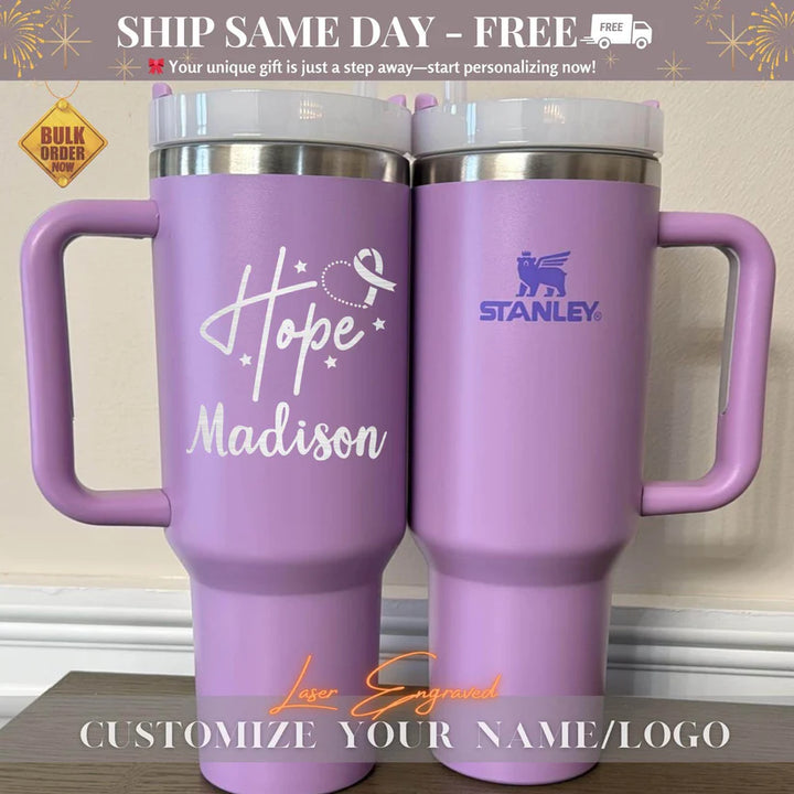 Personalized Stanley 40oz Breast Cancer Awareness Tumbler - Custom Pink Ribbon Cup, Survivor Gift, October Fundraiser, Engraved Hope Name Your Unique Gift is Just a Step Away – Start Personalizing Now! Elevate your hydration game with the Stanley Quencher H2.0 FlowState Tumbler – a premium, laser-engraved stainless steel vacuum-insulated tumbler designed to keep you refreshed all day long. Whether you're hiking, commuting, or running errands, this tumbler is your perfect hydration companion, combining style, durability, and functionality. Why Choose the Stanley Quencher H2.0 Tumbler? • All-Day Temperature Control: Keeps drinks hot for 7 hours, cold for 11 hours, and iced for up to 2 days. • Eco-Friendly & Sustainable: Made with 90% recycled 18/8 stainless steel and BPA-free materials, featuring a recycled stainless steel icon inside to highlight its eco-conscious design. • Personalized Perfection: Add a custom touch with high-quality laser engraving that won’t fade, peel, or wear off. Perfect for names, monograms, logos, or meaningful quotes. • Travel-Ready Design: a reusable straw, a comfort-grip handle, and a base that fits most car cup holders (3.1” diameter). • Built to Last: Durable, double-wall vacuum insulation ensures your drinks stay at the perfect temperature, no matter where life takes you. Product Details: • Dimensions: 3.86" L x 5.82" W x 12.3" H • Material: 90% recycled 18/8 stainless steel, BPA-free • Features: Double-wall vacuum insulation, reusable straw, comfort-grip handle, car cup holder compatible Perfect for Every Occasion: • Personalized Gifts: Ideal for weddings, anniversaries, Valentine’s Day, Mother Day, Father Day, Nurse Day, Thanksgiving Day, Halloween Day, Christmas Day, birthdays, or holidays. • Thoughtful Tokens: Great for teachers, brides, grooms, sports enthusiasts, or coffee lovers. • Corporate & Branded Merchandise: Add your logo for a unique promotional item. • Everyday Essentials: A must-have for outdoor adventures, work, or travel. How It Works: 1. Choose Your Tumbler: Select the Stanley Quencher H2.0 Tumbler. 2. Personalize It: Add your custom text, name, monogram, or logo during checkout. 3. Enjoy or Gift: Receive a one-of-a-kind tumbler that’s perfect for you or a loved one. Shipping & Returns: • Processing Time: Orders are processed within 1-6 business days. You’ll receive a tracking number once your order ships. • Return Policy: As each tumbler is made to order, we do not accept returns or exchanges. However, if you have any issues, please reach out—we’re here to help! Thank You for Supporting Our Small Business! — Us Engravo Make It Yours Today – Personalize Now! Personalized Tumbler, Custom Tumbler, Laser Engraved Tumbler, Engraved Travel Mug, Personalized Coffee Tumbler, Custom Insulated Tumbler, Engraved Stainless Steel Tumbler, Personalized Travel Tumbler, Custom Monogrammed Tumbler, Engraved Water Bottle, Custom Name Tumbler, Personalized Gifts, Custom Gifts, Engraved Gifts, Wedding Gifts, Anniversary Gifts, Valentine’s Day Gifts, Unique Gifts for Her, Gifts for Him, Custom Drinkware, Personalized Cup, Gifts for Couples, Custom Stanley, Monogrammed Gifts, Personalized Water Bottle, Gift for Bride, Personalized Travel Mug, Custom Insulated Cup, Stanley Cup, Stanley Tumbler, Personalized Stanley, Custom Stanley Cup, Stanley 40oz, Stanley Travel Mug, Stanley Mug, Stanley Insulated Cup, Stanley Drinkware, Engraved Stanley Cup, Stanley Cup Custom, Stanley Cup Personalized, Stanley 40oz Tumbler, Stanley Cup Gift, Custom Stanley Tumbler, Stanley Water Bottle, Stanley Mug Custom, Stanley Anniversary Gift, Stanley Gift for Him, Stanley Gift for Her, Custom Stanley 40oz Mug for Summer