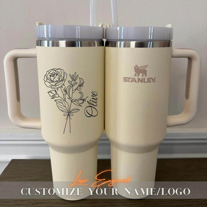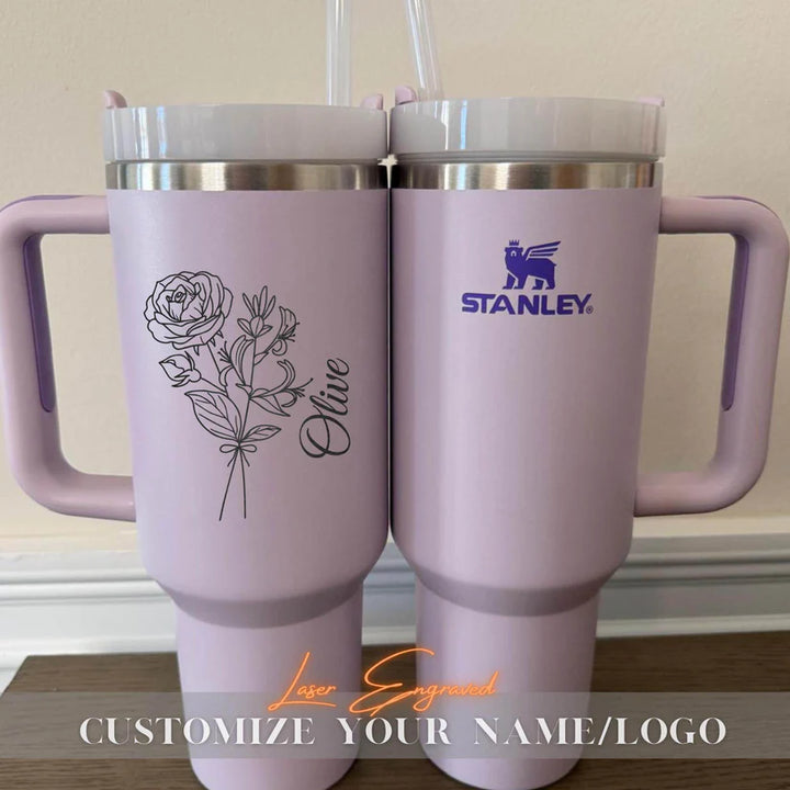 Personalized Stanley 40oz Tumbler Cup, Custom Engraved Tumblers, Bridesmaid Proposal Gift, Gifts for Her, Insulated Travel Mug, Custom Logo