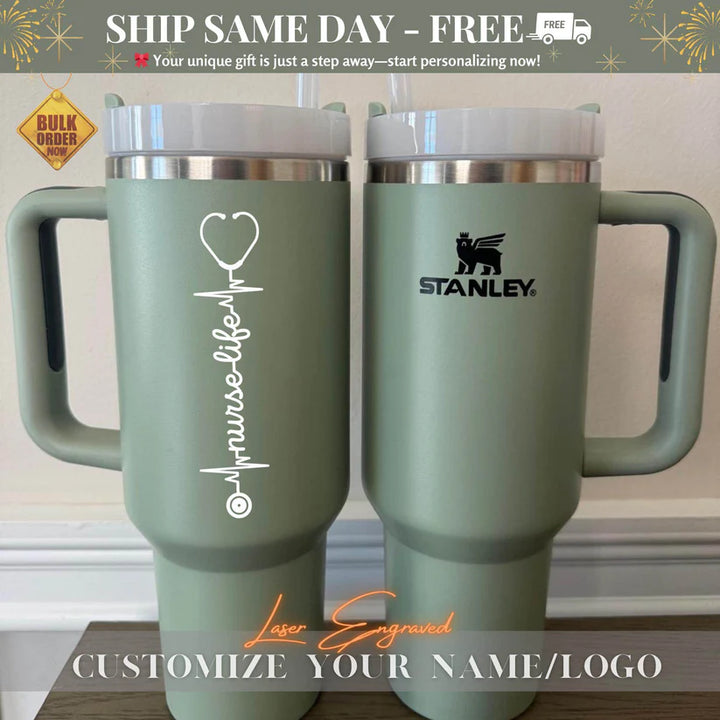 Personalized Stanley 40oz Tumbler for Nurses - Custom Nurse Life Tumbler - Gift for Nurses - Insulated Travel mug - Nurse Appreciation Gifts Your Unique Gift is Just a Step Away – Start Personalizing Now! Elevate your hydration game with the Stanley Quencher H2.0 FlowState Tumbler – a premium, laser-engraved stainless steel vacuum-insulated tumbler designed to keep you refreshed all day long. Whether you're hiking, commuting, or running errands, this tumbler is your perfect hydration companion, combining style, durability, and functionality. Why Choose the Stanley Quencher H2.0 Tumbler? • All-Day Temperature Control: Keeps drinks hot for 7 hours, cold for 11 hours, and iced for up to 2 days. • Eco-Friendly & Sustainable: Made with 90% recycled 18/8 stainless steel and BPA-free materials, featuring a recycled stainless steel icon inside to highlight its eco-conscious design. • Personalized Perfection: Add a custom touch with high-quality laser engraving that won’t fade, peel, or wear off. Perfect for names, monograms, logos, or meaningful quotes. • Travel-Ready Design: a reusable straw, a comfort-grip handle, and a base that fits most car cup holders (3.1” diameter). • Built to Last: Durable, double-wall vacuum insulation ensures your drinks stay at the perfect temperature, no matter where life takes you. Product Details: • Dimensions: 3.86" L x 5.82" W x 12.3" H • Material: 90% recycled 18/8 stainless steel, BPA-free • Features: Double-wall vacuum insulation, reusable straw, comfort-grip handle, car cup holder compatible Perfect for Every Occasion: • Personalized Gifts: Ideal for weddings, anniversaries, Valentine’s Day, Mother Day, Father Day, Nurse Day, Thanksgiving Day, Halloween Day, Christmas Day, birthdays, or holidays. • Thoughtful Tokens: Great for teachers, brides, grooms, sports enthusiasts, or coffee lovers. • Corporate & Branded Merchandise: Add your logo for a unique promotional item. • Everyday Essentials: A must-have for outdoor adventures, work, or travel. How It Works: 1. Choose Your Tumbler: Select the Stanley Quencher H2.0 Tumbler. 2. Personalize It: Add your custom text, name, monogram, or logo during checkout. 3. Enjoy or Gift: Receive a one-of-a-kind tumbler that’s perfect for you or a loved one. Shipping & Returns: • Processing Time: Orders are processed within 1-6 business days. You’ll receive a tracking number once your order ships. • Return Policy: As each tumbler is made to order, we do not accept returns or exchanges. However, if you have any issues, please reach out—we’re here to help! Thank You for Supporting Our Small Business! — Us Engravo Make It Yours Today – Personalize Now! Personalized Tumbler, Custom Tumbler, Laser Engraved Tumbler, Engraved Travel Mug, Personalized Coffee Tumbler, Custom Insulated Tumbler, Engraved Stainless Steel Tumbler, Personalized Travel Tumbler, Custom Monogrammed Tumbler, Engraved Water Bottle, Custom Name Tumbler, Personalized Gifts, Custom Gifts, Engraved Gifts, Wedding Gifts, Anniversary Gifts, Valentine’s Day Gifts, Unique Gifts for Her, Gifts for Him, Custom Drinkware, Personalized Cup, Gifts for Couples, Custom Stanley, Monogrammed Gifts, Personalized Water Bottle, Gift for Bride, Personalized Travel Mug, Custom Insulated Cup, Stanley Cup, Stanley Tumbler, Personalized Stanley, Custom Stanley Cup, Stanley 40oz, Stanley Travel Mug, Stanley Mug, Stanley Insulated Cup, Stanley Drinkware, Engraved Stanley Cup, Stanley Cup Custom, Stanley Cup Personalized, Stanley 40oz Tumbler, Stanley Cup Gift, Custom Stanley Tumbler, Stanley Water Bottle, Stanley Mug Custom, Stanley Anniversary Gift, Stanley Gift for Him, Stanley Gift for Her, Custom Stanley 40oz Mug for Summer