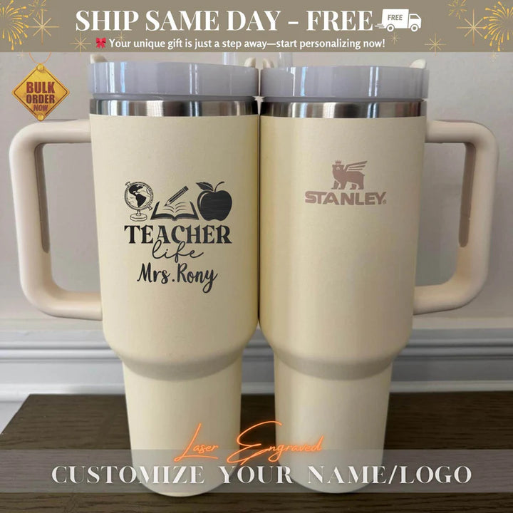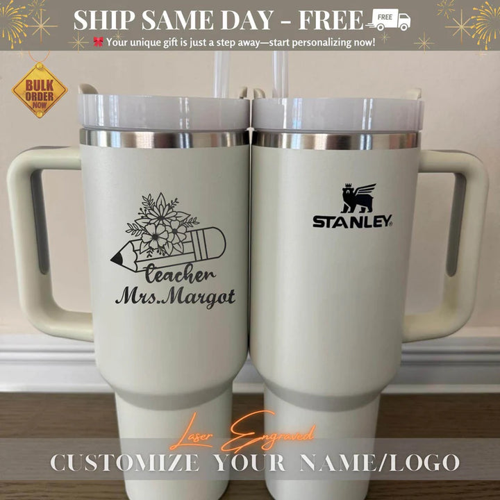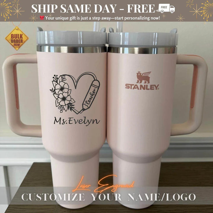 Personalized Tumbler Gift for Teacher, Custom Stainless Steel Tumbler with Name, Traveling mug, Teacher Appreciation Gifts, Thank You Gifts Your Unique Gift is Just a Step Away – Start Personalizing Now! Elevate your hydration game with the Stanley Quencher H2.0 FlowState Tumbler – a premium, laser-engraved stainless steel vacuum-insulated tumbler designed to keep you refreshed all day long. Whether you're hiking, commuting, or running errands, this tumbler is your perfect hydration companion, combining style, durability, and functionality. Why Choose the Stanley Quencher H2.0 Tumbler? • All-Day Temperature Control: Keeps drinks hot for 7 hours, cold for 11 hours, and iced for up to 2 days. • Eco-Friendly & Sustainable: Made with 90% recycled 18/8 stainless steel and BPA-free materials, featuring a recycled stainless steel icon inside to highlight its eco-conscious design. • Personalized Perfection: Add a custom touch with high-quality laser engraving that won’t fade, peel, or wear off. Perfect for names, monograms, logos, or meaningful quotes. • Travel-Ready Design: a reusable straw, a comfort-grip handle, and a base that fits most car cup holders (3.1” diameter). • Built to Last: Durable, double-wall vacuum insulation ensures your drinks stay at the perfect temperature, no matter where life takes you. Product Details: • Dimensions: 3.86" L x 5.82" W x 12.3" H • Material: 90% recycled 18/8 stainless steel, BPA-free • Features: Double-wall vacuum insulation, reusable straw, comfort-grip handle, car cup holder compatible Perfect for Every Occasion: • Personalized Gifts: Ideal for weddings, anniversaries, Valentine’s Day, Mother Day, Father Day, Nurse Day, Thanksgiving Day, Halloween Day, Christmas Day, birthdays, or holidays. • Thoughtful Tokens: Great for teachers, brides, grooms, sports enthusiasts, or coffee lovers. • Corporate & Branded Merchandise: Add your logo for a unique promotional item. • Everyday Essentials: A must-have for outdoor adventures, work, or travel. How It Works: 1. Choose Your Tumbler: Select the Stanley Quencher H2.0 Tumbler. 2. Personalize It: Add your custom text, name, monogram, or logo during checkout. 3. Enjoy or Gift: Receive a one-of-a-kind tumbler that’s perfect for you or a loved one. Shipping & Returns: • Processing Time: Orders are processed within 1-6 business days. You’ll receive a tracking number once your order ships. • Return Policy: As each tumbler is made to order, we do not accept returns or exchanges. However, if you have any issues, please reach out—we’re here to help! Thank You for Supporting Our Small Business! — Us Engravo Make It Yours Today – Personalize Now! Personalized Tumbler, Custom Tumbler, Laser Engraved Tumbler, Engraved Travel Mug, Personalized Coffee Tumbler, Custom Insulated Tumbler, Engraved Stainless Steel Tumbler, Personalized Travel Tumbler, Custom Monogrammed Tumbler, Engraved Water Bottle, Custom Name Tumbler, Personalized Gifts, Custom Gifts, Engraved Gifts, Wedding Gifts, Anniversary Gifts, Valentine’s Day Gifts, Unique Gifts for Her, Gifts for Him, Custom Drinkware, Personalized Cup, Gifts for Couples, Custom Stanley, Monogrammed Gifts, Personalized Water Bottle, Gift for Bride, Personalized Travel Mug, Custom Insulated Cup, Stanley Cup, Stanley Tumbler, Personalized Stanley, Custom Stanley Cup, Stanley 40oz, Stanley Travel Mug, Stanley Mug, Stanley Insulated Cup, Stanley Drinkware, Engraved Stanley Cup, Stanley Cup Custom, Stanley Cup Personalized, Stanley 40oz Tumbler, Stanley Cup Gift, Custom Stanley Tumbler, Stanley Water Bottle, Stanley Mug Custom, Stanley Anniversary Gift, Stanley Gift for Him, Stanley Gift for Her, Custom Stanley 40oz Mug for Summer