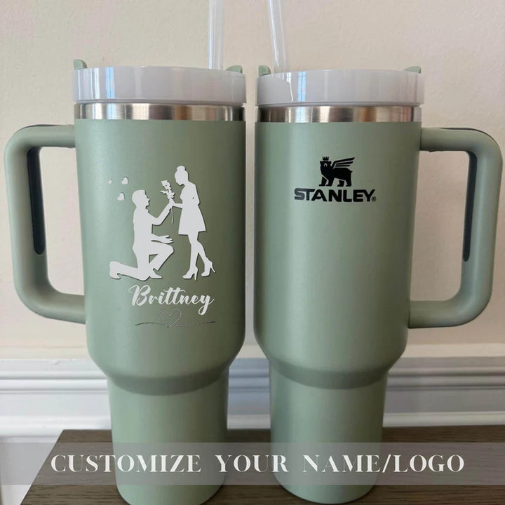 Your Unique gift is just a step away-Start Personalizing Now! Personalized Valentine's Day Stanley 40oz Cup - Valentines gift for boyfriend & Girlfriend - Anniversary Gifts - Wedding Bridesmaid Gifts Stanley Quencher H2.0 with Straw Tumbler with Leak proof Lid 40 oz - Built-In Straw & Handle - Cup holder Compatible for Travel - Insulated Stainless Steel Cup - BPA-Free - All Colors are available Whether you're on a hike, commuting, or running errands, ensures you stay hydrated wherever life takes you. Product Details: Hot: 7 hours Cold: 11 hours Iced: 2 days Weight: 1.4 lbs Dimensions: 3.86" L x 5.82" W x 12.3" H Made with 90% recycled 18/8 stainless steel and BPA-free materials. The tumbler includes a recycled stainless steel icon inside, signifying its sustainable construction. Other features: Double-wall vacuum insulation Screw-on 3-position lid Reusable straw Comfort-grip handle Car cup holder compatible (base diameter: 3.1 inches) Add this durable, eco-friendly tumbler to your collection today and take your hydration game to the next level! Shipping: Orders are processed within 1-6 business days. You’ll receive a tracking number once your order has shipped. Return Policy: As each item is made to order, we do not accept returns or exchanges. If you experience any issues with your order, please don’t hesitate to reach out. If you have any questions about the product or ordering process, feel free to contact us! Thank you for supporting our small business! Us Engravo ,Personalized Tumbler with Lid,Custom Laser Engraved Travel Cup,Engraved Wedding Tumbler,Custom Tumbler for Teacher,Engraved Tumblers for Women,Custom Tumbler with Name,Engraved Insulated Drinkware,Unique Personalized Tumbler,Custom Tumber for summer