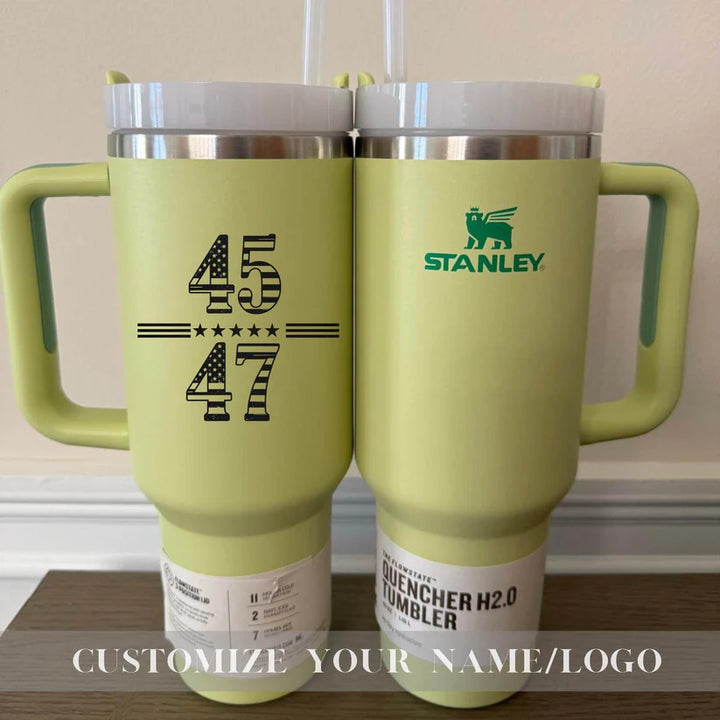 Your Unique gift is just a step away-Start Personalizing Now! President Trump 45 - 47 Stanley 40oz Tumbler - Custom Stanley 40oz mug for Trump - Laser Engraved Stanley 40oz cup - Trump anniversary Gifts Stanley Quencher H2.0 with Straw Tumbler with Leak proof Lid 40 oz - Built-In Straw & Handle - Cup holder Compatible for Travel - Insulated Stainless Steel Cup - BPA-Free - All Colors are available Whether you're on a hike, commuting, or running errands, ensures you stay hydrated wherever life takes you. Product Details: Hot: 7 hours Cold: 11 hours Iced: 2 days Weight: 1.4 lbs Dimensions: 3.86" L x 5.82" W x 12.3" H Made with 90% recycled 18/8 stainless steel and BPA-free materials. The tumbler includes a recycled stainless steel icon inside, signifying its sustainable construction. Other features: Double-wall vacuum insulation Screw-on 3-position lid Reusable straw Comfort-grip handle Car cup holder compatible (base diameter: 3.1 inches) Add this durable, eco-friendly tumbler to your collection today and take your hydration game to the next level! Shipping: Orders are processed within 1-6 business days. You’ll receive a tracking number once your order has shipped. Return Policy: As each item is made to order, we do not accept returns or exchanges. If you experience any issues with your order, please don’t hesitate to reach out. If you have any questions about the product or ordering process, feel free to contact us! Thank you for supporting our small business! Us Engravo ,Personalized Tumbler with Lid,Custom Laser Engraved Travel Cup,Engraved Wedding Tumbler,Custom Tumbler for Teacher,Engraved Tumblers for Women,Custom Tumbler with Name,Engraved Insulated Drinkware,Unique Personalized Tumbler,Custom Tumber for summer