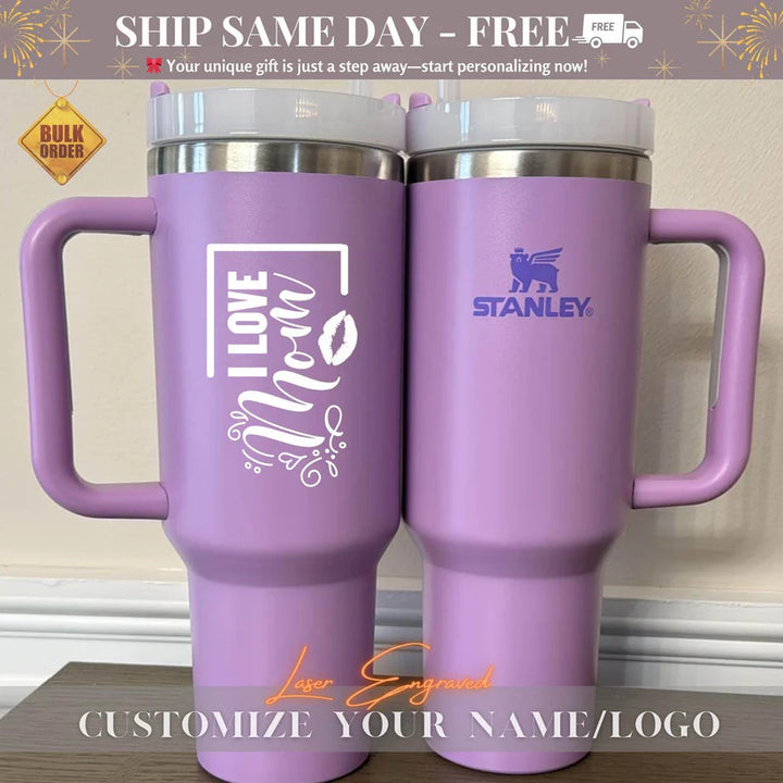 Stanley 40oz Tumbler For Mothers Day Gift, Custom STANLEY Cup, Tumbler with Handle, I Love Mom Personalized Engraved Stanley 40oz Mug