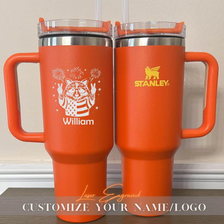 Stanley 40oz Tumbler with Patriotic Highland Cow – Custom Name Fourth of July Cup – Personalized Country Western Gift Your Unique Gift is Just a Step Away – Start Personalizing Now! Elevate your hydration game with the Stanley Quencher H2.0 FlowState Tumbler – a premium, laser-engraved stainless steel vacuum-insulated tumbler designed to keep you refreshed all day long. Whether you're hiking, commuting, or running errands, this tumbler is your perfect hydration companion, combining style, durability, and functionality. Why Choose the Stanley Quencher H2.0 Tumbler? • All-Day Temperature Control: Keeps drinks hot for 7 hours, cold for 11 hours, and iced for up to 2 days. • Eco-Friendly & Sustainable: Made with 90% recycled 18/8 stainless steel and BPA-free materials, featuring a recycled stainless steel icon inside to highlight its eco-conscious design. • Personalized Perfection: Add a custom touch with high-quality laser engraving that won’t fade, peel, or wear off. Perfect for names, monograms, logos, or meaningful quotes. • Travel-Ready Design: a reusable straw, a comfort-grip handle, and a base that fits most car cup holders (3.1” diameter). • Built to Last: Durable, double-wall vacuum insulation ensures your drinks stay at the perfect temperature, no matter where life takes you. Product Details: • Dimensions: 3.86" L x 5.82" W x 12.3" H • Material: 90% recycled 18/8 stainless steel, BPA-free • Features: Double-wall vacuum insulation, reusable straw, comfort-grip handle, car cup holder compatible Perfect for Every Occasion: • Personalized Gifts: Ideal for weddings, anniversaries, Valentine’s Day, Mother Day, Father Day, Nurse Day, Thanksgiving Day, Halloween Day, Christmas Day, birthdays, or holidays. • Thoughtful Tokens: Great for teachers, brides, grooms, sports enthusiasts, or coffee lovers. • Corporate & Branded Merchandise: Add your logo for a unique promotional item. • Everyday Essentials: A must-have for outdoor adventures, work, or travel. How It Works: 1. Choose Your Tumbler: Select the Stanley Quencher H2.0 Tumbler. 2. Personalize It: Add your custom text, name, monogram, or logo during checkout. 3. Enjoy or Gift: Receive a one-of-a-kind tumbler that’s perfect for you or a loved one. Shipping & Returns: • Processing Time: Orders are processed within 1-6 business days. You’ll receive a tracking number once your order ships. • Return Policy: As each tumbler is made to order, we do not accept returns or exchanges. However, if you have any issues, please reach out—we’re here to help! Thank You for Supporting Our Small Business! — Us Engravo Make It Yours Today – Personalize Now!