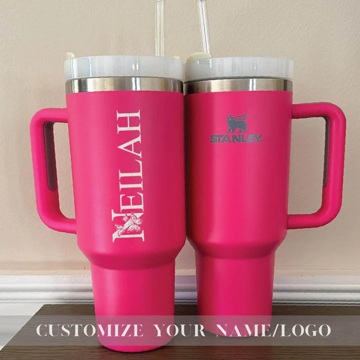 Your Unique gift is just a step away-Start Personalizing Now! Personalized Stanley 40oz Tumbler, Custom Engraved Tumblers, Bridesmaid Proposal Gift, Insulated Travel Mug Gifts for Her, Custom Logo Product Details: We offer a 40 oz size only, with the following features: Hot: 7 hours Cold: 11 hours Iced: 2 days Weight: 1.4 lbs Dimensions: 3.86" L x 5.82" W x 12.3" H Made with 90% recycled 18/8 stainless steel and BPA-free materials. The tumbler includes a recycled stainless steel icon inside, signifying its sustainable construction. Other features: Double-wall vacuum insulation Screw-on 3-position lid Reusable straw Comfort-grip handle Car cup holder compatible (base diameter: 3.1 inches) 🩵 Shipping: Orders are processed within 1-6 business days. You’ll receive a tracking number once your order has shipped. 🩵 Return Policy: As each item is made to order, we do not accept returns or exchanges. If you experience any issues with your order, please don’t hesitate to reach out. If you have any questions about the product or ordering process, feel free to contact us!